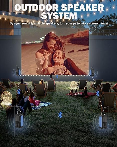 - SYNC MULTIPLE SPEAKERS WITH EASY PRESS: Supports simultaneous pairing of speakers wirelessly, no apps and cords need. Using the latest operating system, you can easily complete the pairing work with one key. Providing a wonderful sound system when the linkable bluetooth speakers are paired together. Creating a perfect atmosphere for the deck, yard, garden, BBQ, Movie night, and camping .