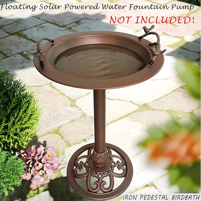 - Easy to assemble - needs some steps to put together.Solar Bird Bath Fountain Pump NOT included (6.3 inches/16.0cm size). Cause of water enviroment,