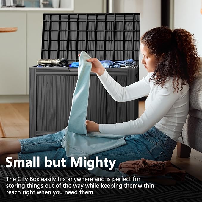 - FROM INDOORS TO OUTDOORS: This terrace deck box is not just for outdoor use; it can also function as an indoor laundry storage chest. Whether storing outdoor cushions, garden tools, pool accessories, or sports equipment, it offers plenty of room. Additionally, it serves as a versatile side table, patio seat, storage bench, or footstool