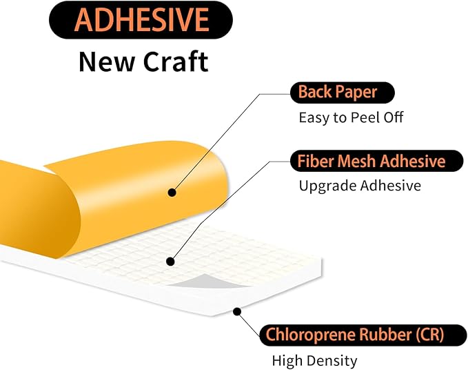 - Strong Grid Adhesive--Our weather stripping door seal strip adopt premium strong grid adhesive, guarantees the door insulation stripping sticks on firmly, waterproof.No longer worry about degumming or glue residue.