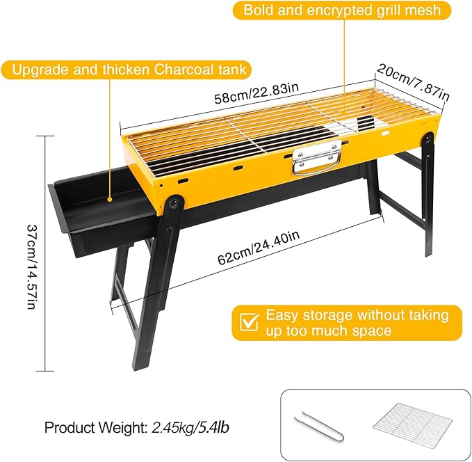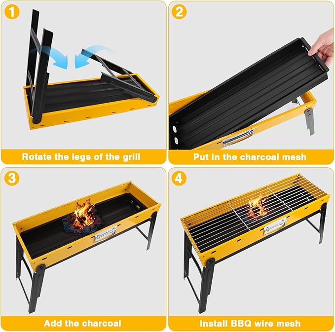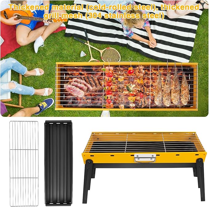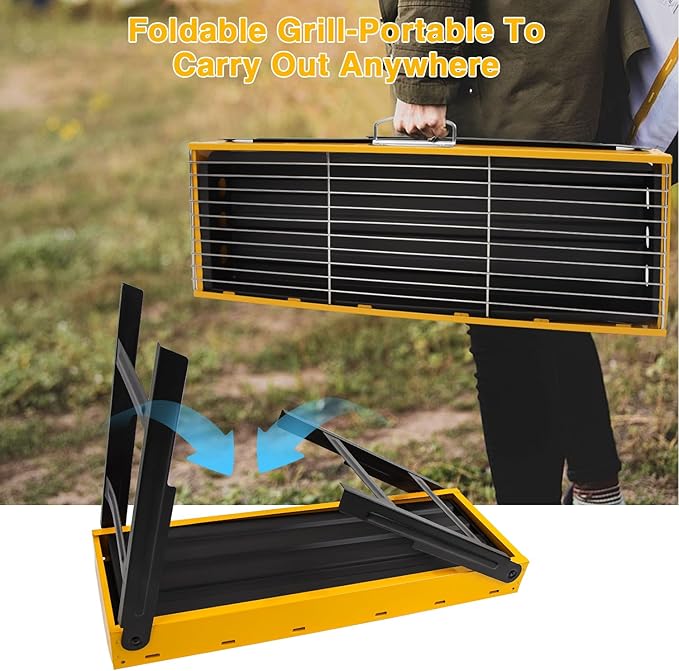 - 【Quick Setup, Mess-Free Cleanup 】No tools or screws needed! Features a detachable grill grate and ash catcher for hassle-free assembly and cleanup. Ideal for camping, beach days, tailgates, or backyard BBQs.
