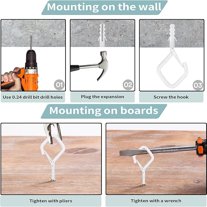 - 🔧【Easy Screw-In Installation】 Simply twist into wood, ceilings, beams, fences, or walls for instant hanging support. 2.36-inch length provides a firm hold.