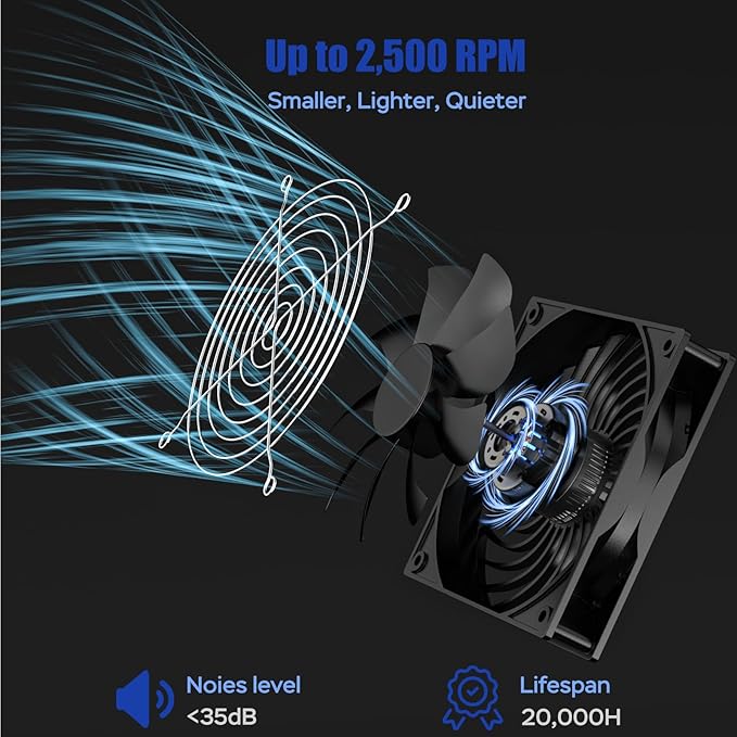 - SUPERIOR DURABILITY: The dual fans feature a heavy-duty aluminum construction, double metal protective nets, and an expoxy resin-coated surface for enhanced durability. Equipped with a waterproof brushless motor, the fans ensure efficient, long-lasting performance. Engineered to withstand shocks and operate reliably in harsh outdoor conditions.