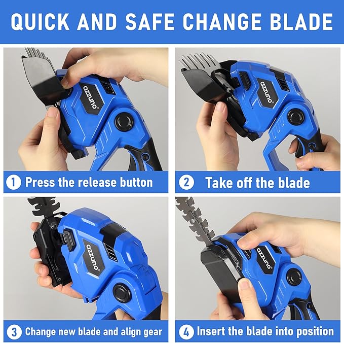 - 【2-in-1 Grass Shears & Shrubbery Trimmer】Equipped with dual-layer steel blades, the short blade (5.12"wide) is ideal for cutting grass and small patches of lawn, while the long blade (9.06"long) is designed for trimming hedges, shrubs, trees, and ornamental bushes. For hardwood branches, specialized tools such as pruning shears or a mini chainsaw may be required. Please apply liquid oil to the hedge trimmer blades after use to maintain and protect them