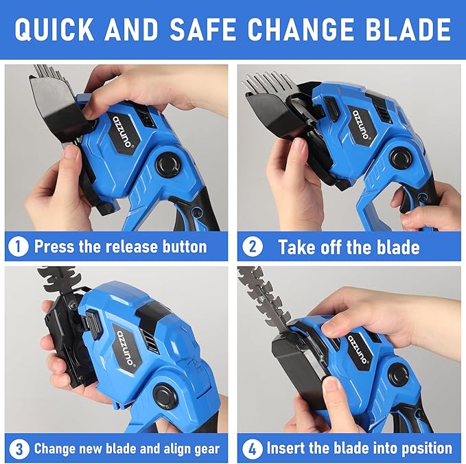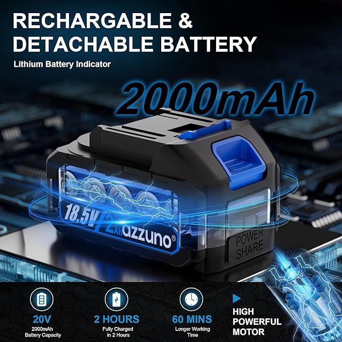 - 【Cordless Design Flexible Operation】The AZZUNO cordless hedge trimmer comes with removable lithium-ion battery (20V 2000mAh), allowing you to say goodbye to tangled cords. Fully charged in just 2 hours, each battery provides up to 45-60 minutes of runtime, letting you trim anywhere without needing a power outlet or extension cord. Perfect for reaching every corner of your garden and boosting your work efficiency