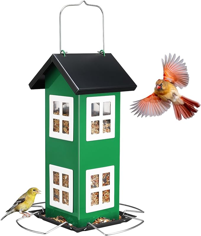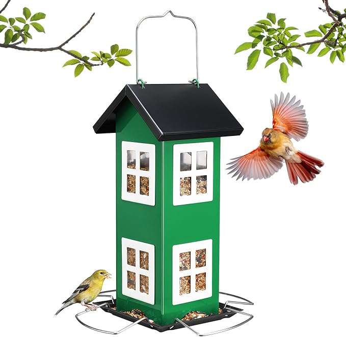 - Sturdy Materials: Our bird house feeder is made of metal. The enclosed design also offers shelter for birds from harsh weather conditions like rain, snow, and strong winds, making it a more comfortable spot for feeding