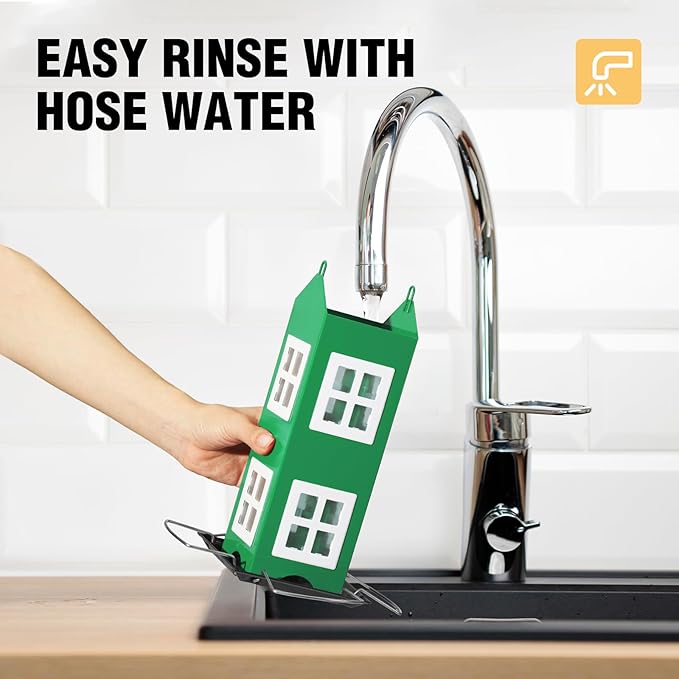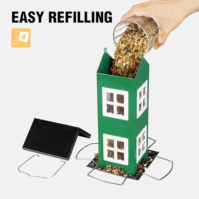 - Easy To Refill & Clean: The bird feeder is designed with convenience in mind, featuring tops that open for easy refilling with birds' favorite foods, such as black oil sunflower seeds, peanuts, safflower seeds. They are also easy to clean, simply requiring a rinse with clean water