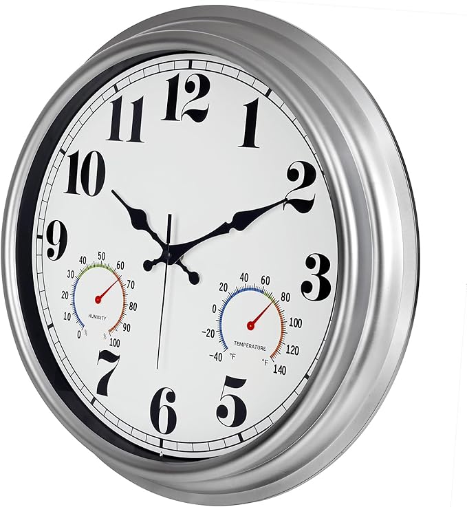 - Versatile Functionality: This 16-inch clock combines timekeeping with a thermometer and hygrometer, providing accurate time and real-time temperature and humidity readings to meet diverse needs
