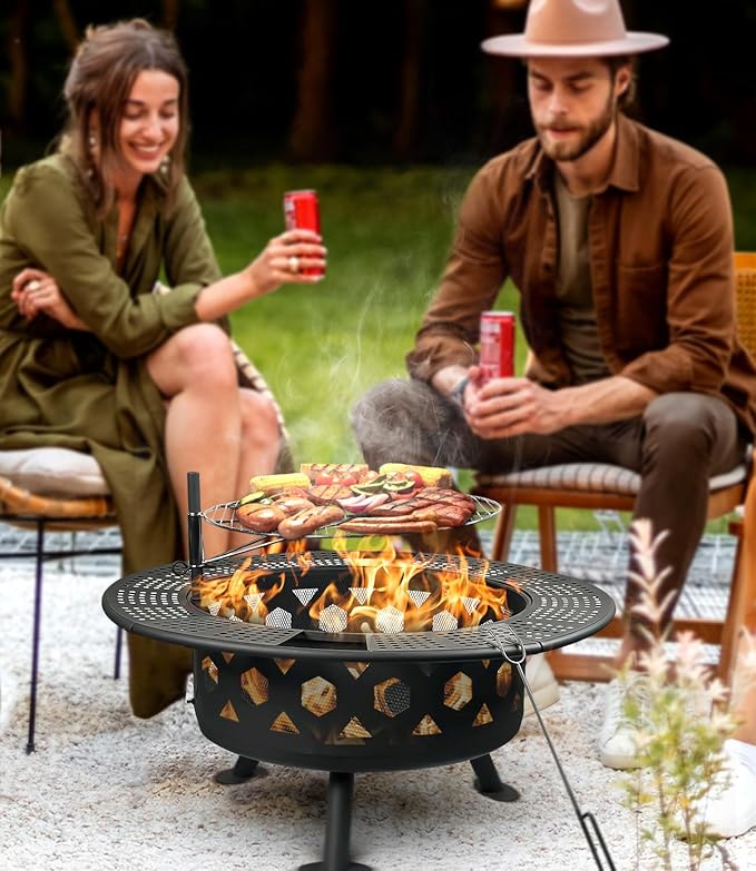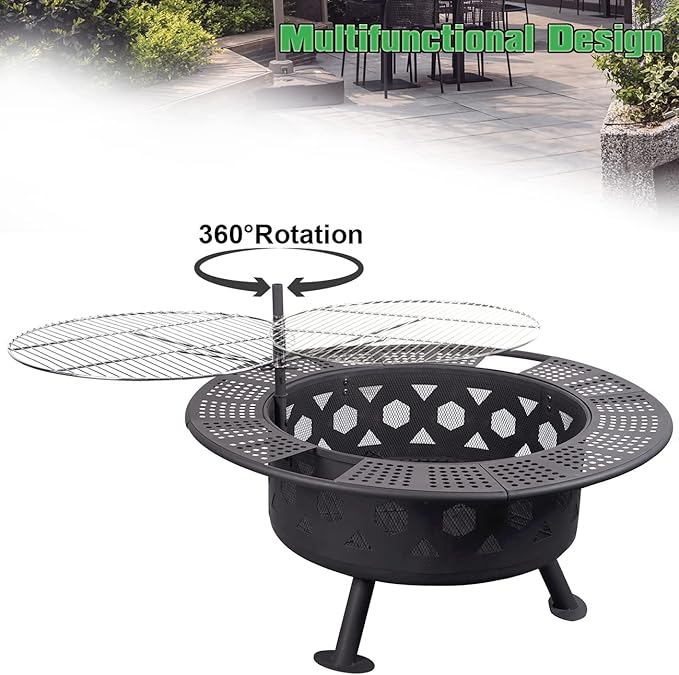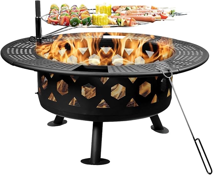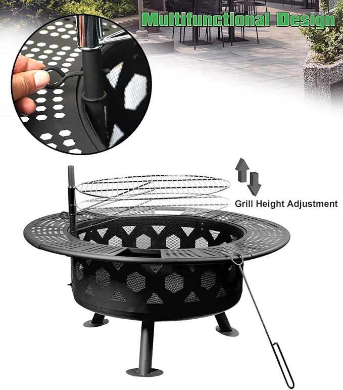 - Easy to Assemble: Comes with an easy-to-read manual and all hardware for assembling, finished in 15 minutes. Plus, the backyard fire pit package includes a portable poker, allowing you to use it to move the heated cooking grill or logs to prevent accidental burns.