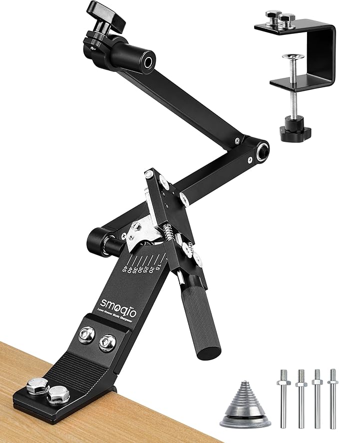 - Restore Sharpness with Ease:SMOQIO lawn mower blade sharpener makes it easy to bring dull blades back to life—boosting mowing efficiency, delivering precise results. Fits blades: Width 1.69”–3.54”, Max Thickness 0.28”, Max Length 30”.