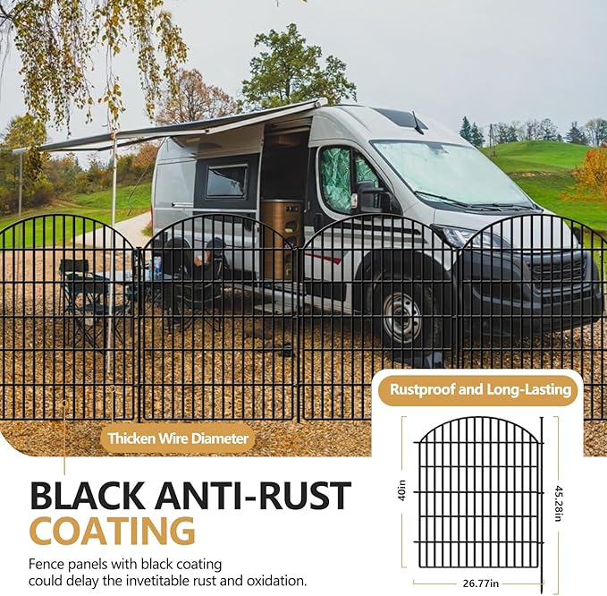 - STURDY & DECORATIVE: This black metal fence is made of thick metal wire welded to enhance the welding strength, not easy to crack, more solid, the surface has been baked black painting to delay rust and oxidation to ensure durability. The classic arched appearance will add a touch of modern simplicity to your garden, patio and yard.
