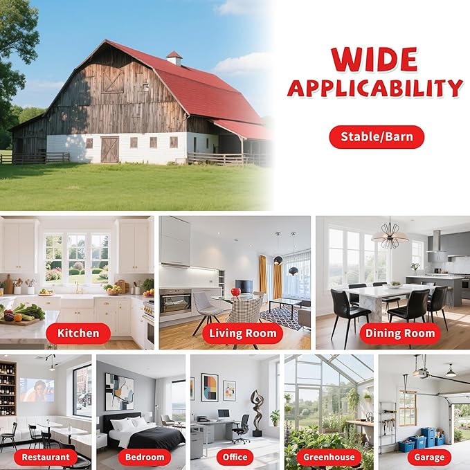 - Versatile Pest Control: This flying insect trap is ideal for indoor use in kitchens, offices, living rooms, bedrooms, patios, basements, restaurants and greenhouses. Thanks to its universal design, it provides complete coverage and adapts to different environments, ensuring effective insect control all year round.