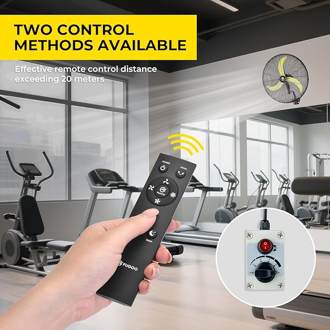 FUGOO 24" Quiet Outdoor Oscillating Wall Mount Fan With Remote Control,All Sealed BLDC Motor,4-Speed Waterproof Outdoor Fan, Heavy Duty Industrial Wall Fans for House,Patios,Garage,Warehouse 5000CFM