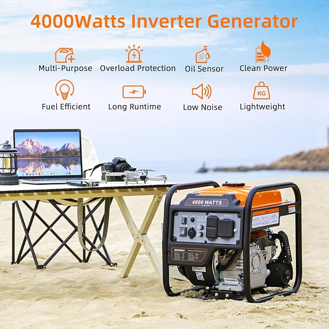 4000W Inverter Generator, Open Frame Generator Gas Powered, Portable Outdoor Power Equipment, Emergency Home Backup, RV Ready 30A Outlet, Low Noise