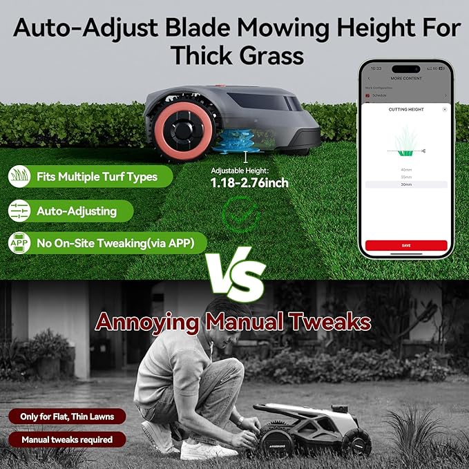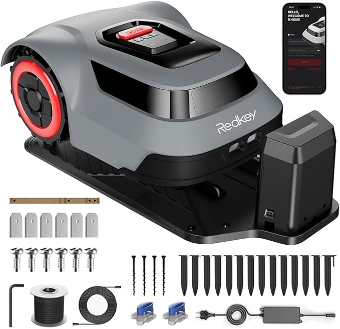 Redkey MGC1000 Robot Lawn Mower with 590ft Boundary Wires for 0.25 Acre (1/4 Acre), 45% Slope, 70Mins Runtime, Auto Recharge, Automatic Robotic Lawn Mower w/Precise Location & Breakpoint Detection