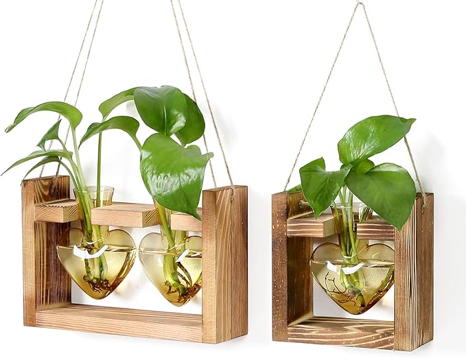 2+1 Plant Terrarium Plant Propagation Station Birthday Gifts for Women Home Office Decor with Wooden Stand