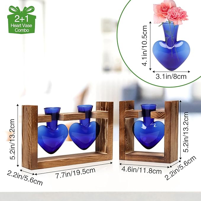 2+1 Plant Terrarium Plant Propagation Station Birthday Gifts for Women Home Office Decor with Wooden Stand