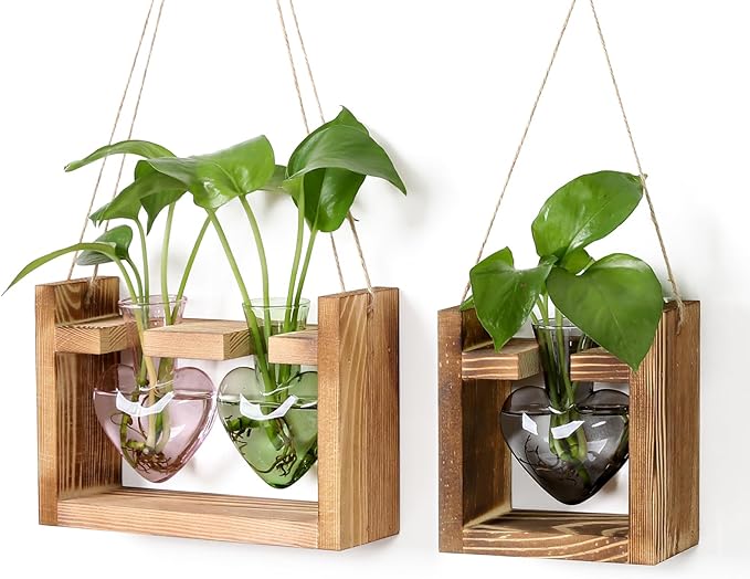 2+1 Plant Terrarium Plant Propagation Station Birthday Gifts for Women Home Office Decor with Wooden Stand