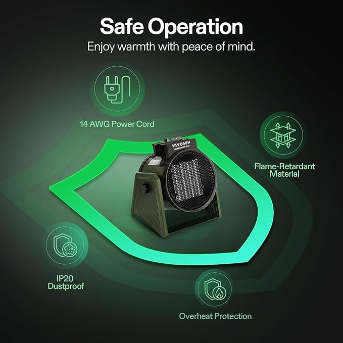 - Wide Range of Applications: Heats up to 160 square feet; Perfect for greenhouses, grow tents, garages, kitchens, living rooms, bedrooms, workshops, offices, basements, and more