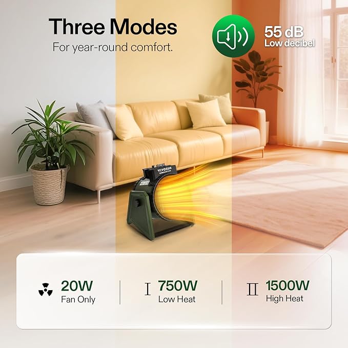 VIVOSUN Portable Greenhouse Heater with Adjustable Thermostat, 750W/1500W Electric Heater, 3 Modes for Fast Heating, Overheat Protection, Dustproof Design for Grow Tents, Patios & Outdoors