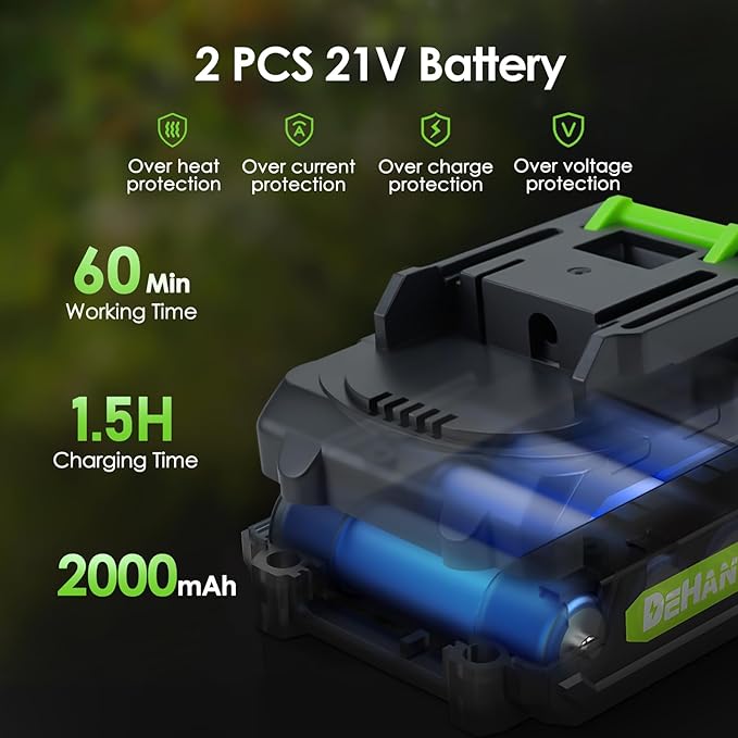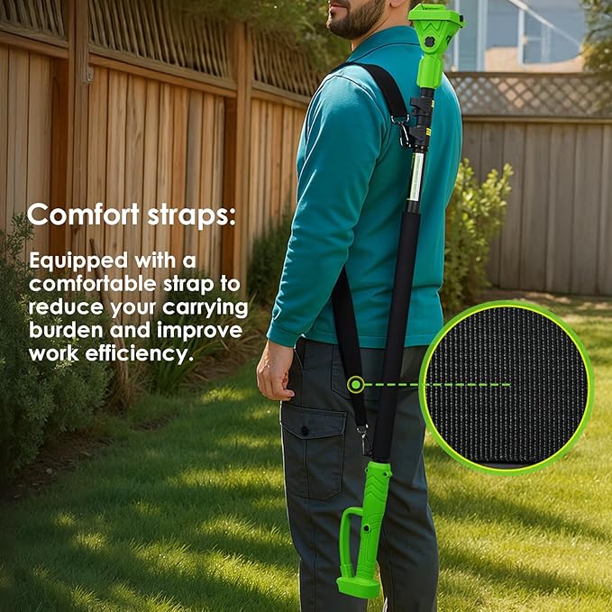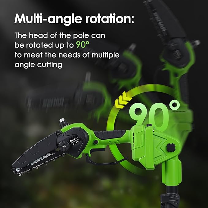 2 IN 1 Electric Pole Saw Brushless 21V Battery Chainsaw Cordless with Rotatable Pole 15FT Max Reach, Shoulder Strap, Powered Pole Saw for Tree Trimming and Wood Cutting Tool -- Green