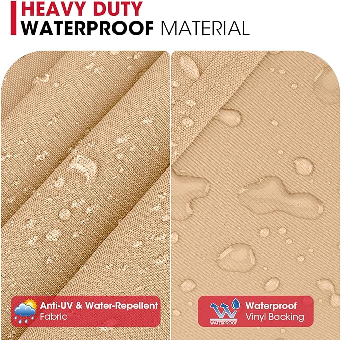 - Waterproof: The fabric surface is treated with a water-repellent finish that allows water to bead up and roll off the cover. The heavy-duty waterproof vinyl undercoating is thick and provides a higher level of waterproof protection to keep your grill dry and clean throughout the year