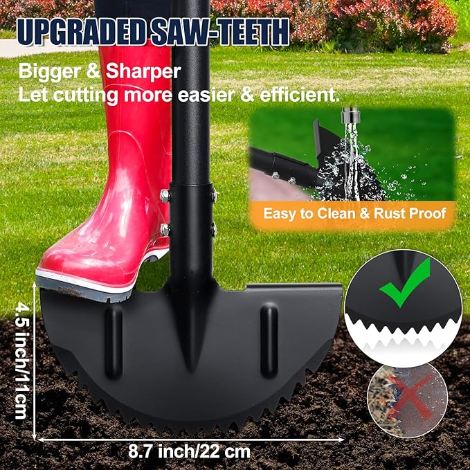 - 【Premium Durable Construction】 Made of high-carbon stainless steel with a sharp, reinforced blade for effortless cutting through tough soil, weeds, and grass roots. Rust-resistant and built to last seasons.