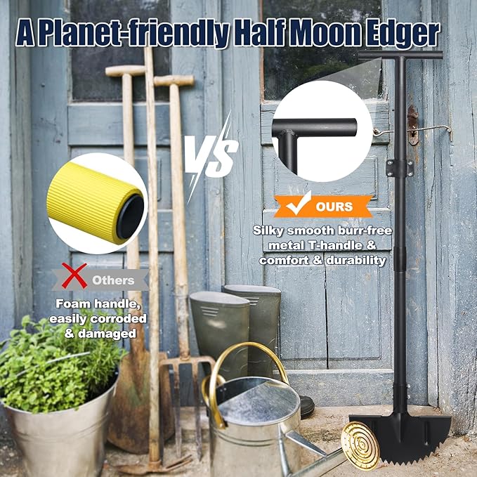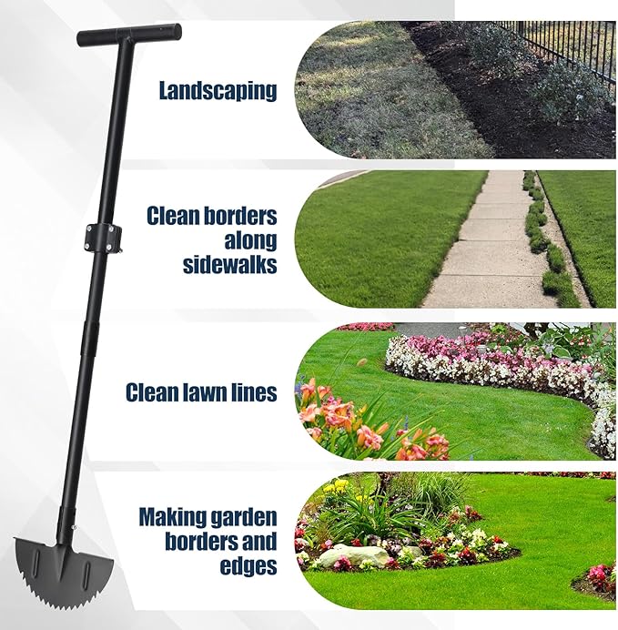 - 【Comfortable & Efficient】 Features an ergonomic metal handle with anti-slip grip, reducing hand fatigue. Extended handle (adjustable length available) minimizes bending, making lawn edging easier on your back.