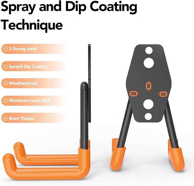 - WEATHERPROOF& DURABLE- Rain or shine, this garage storage hooks stands strong! Its surface is treated with a special spray and dip coating process, ensuring it's waterproof, slip-proof, scratch-resistant, and built to withstand whatever nature throws its way