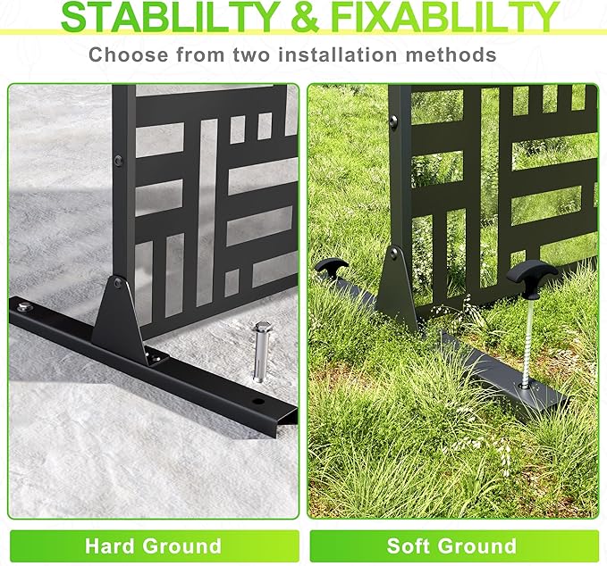 - 【Robust Metal Build】The metal privacy screen boasts a robust construction crafted from high-quality galvanized steel. Designed to endure the rigors of outdoor elements, its sturdy build guarantees prolonged durability.