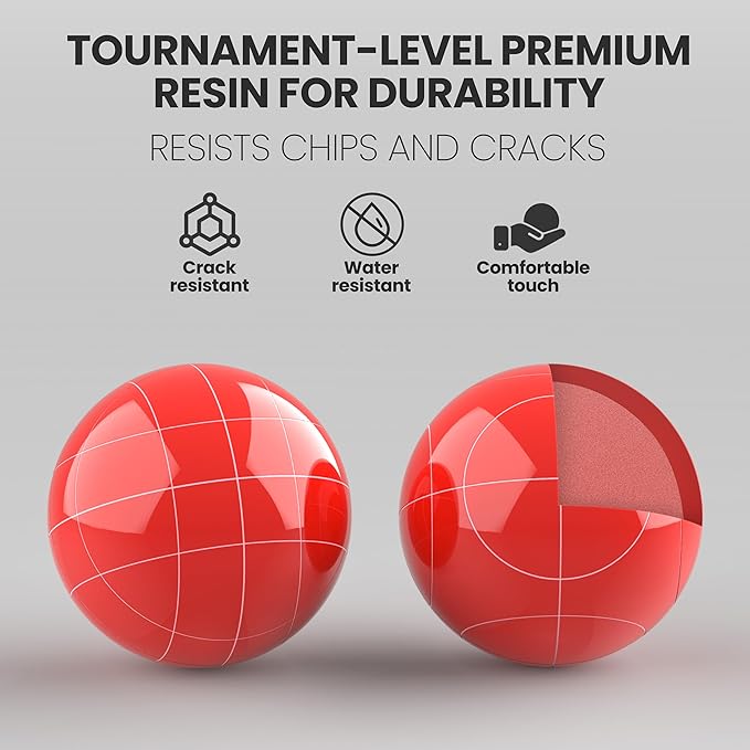 - Premium Quality: Our bocce ball set is made from a premium quality hard polyresin for a long-term use. Adopting a waterproof and no crack material, you can play at anywhere year after year, giving you an excuse to be outside on a weekday after work and spend time in the backyard with your friend and family