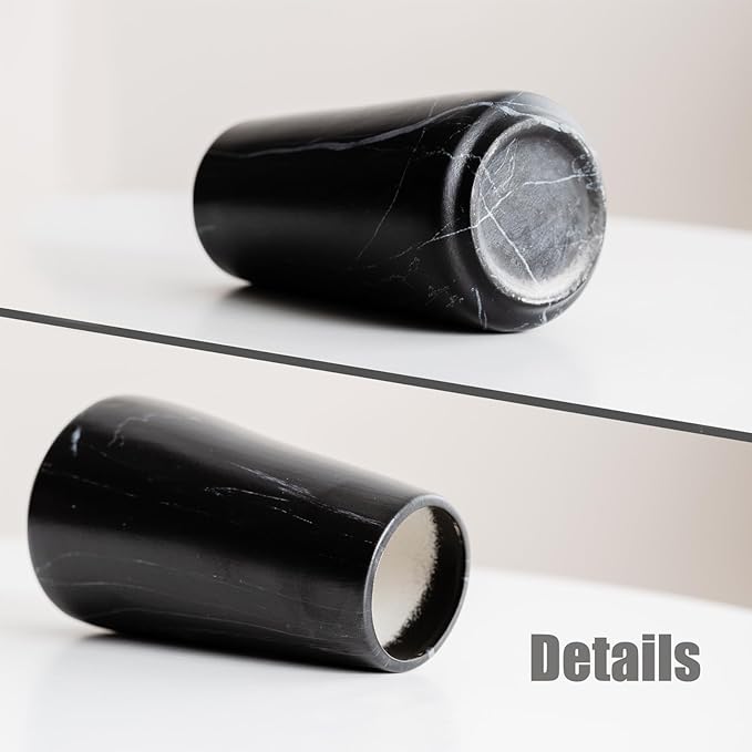 Marble Black Vase - Black Flower vase, 6" Small Simple Modern Ceramic Vases for Flower/Pampas Grass, Minimalist Farmhouse Boho Vase for Centerpieces, Home Decor, Bathroom Decor