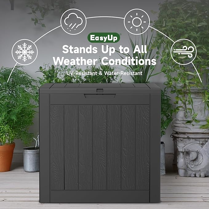 - COMPACT BUT VERSATILE: Compact yet versatile, this deck box measures 22.1''L x 17.1''W x 20.9''H, offering a 32-gallon capacity. It’s perfect for storing patio cushions, gardening tools, hoses, or delivery packages, keeping your space neat and organized.
