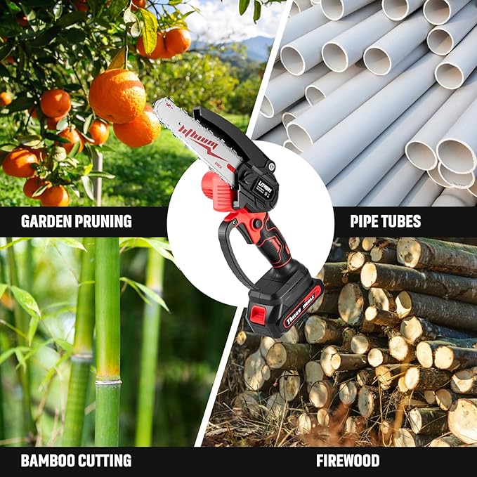 - 【Versatile and Portable】- This battery-powered chainsaw is a compact and lightweight solution for your cutting needs. It's perfect for small-scale tree trimming and pruning tasks, offering excellent maneuverability.
