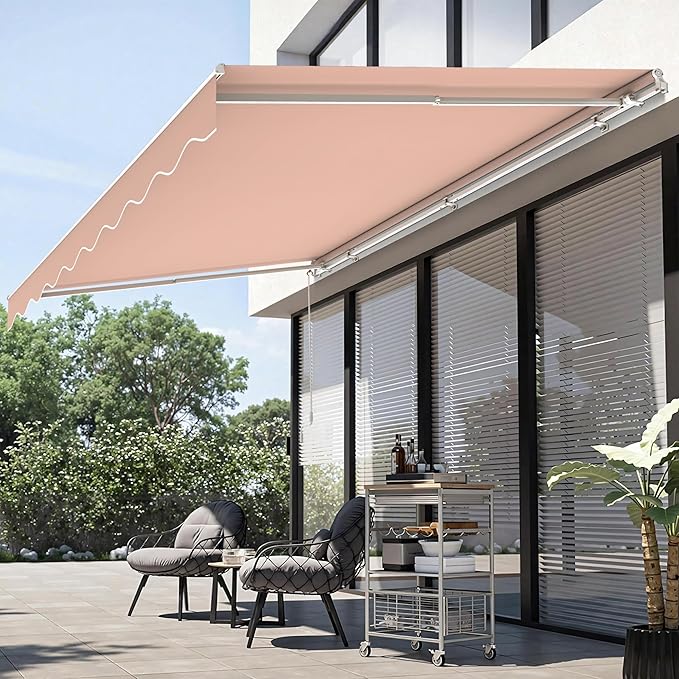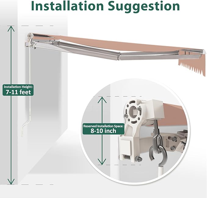 - Adjustable And Retractable Awning : During installation, you can customize the sunshade coverage, and the awning of the patio has an adjustment range of 60Β°-90Β°. In addition, just turn the 4.9' hand crank to extend the retractable awning to your desired position to meet your sunshade and rain protection needs.