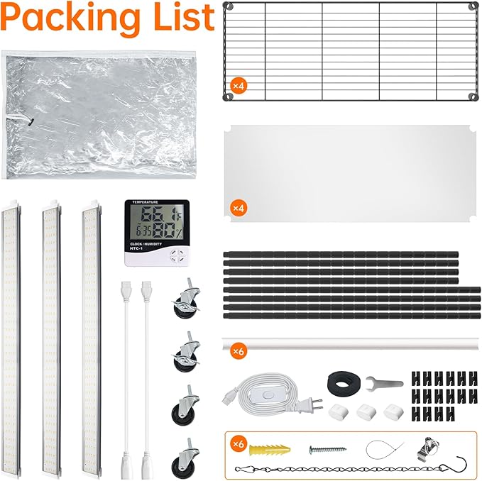 - Portable with Heavy-Duty Wheels - Four industrial wheels (two lockable) allow effortless mobility, while the rust-resistant design guarantees durability. Move your indoor greenhouse with grow light seamlessly or lock it securely in place