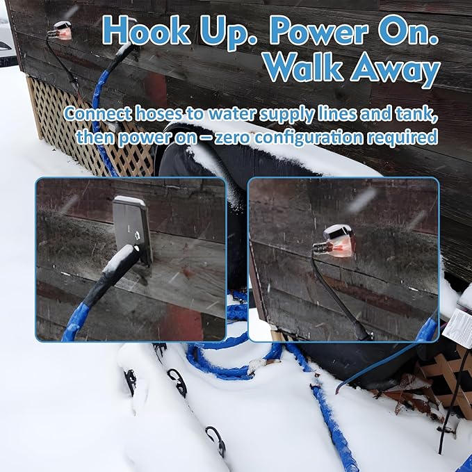 - 【Plumbing Protection】Our heated water hose for rv through the intelligent heating control system in order to keep the water flow will not freeze in the hose, even when the temperature outside drops to -45°F. It's a well-known fact that in most areas during winter nights, regular hoses freeze due to low temperatures. Using heated water hose can easily solve this problem, and the effortless installation will make you very easier.