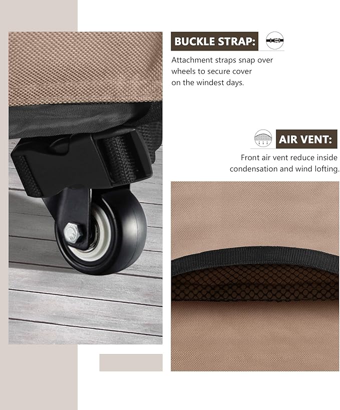 - Full coverage design avoids the exposure of cooking equipment in the sun makes your gas grill always look like new.
