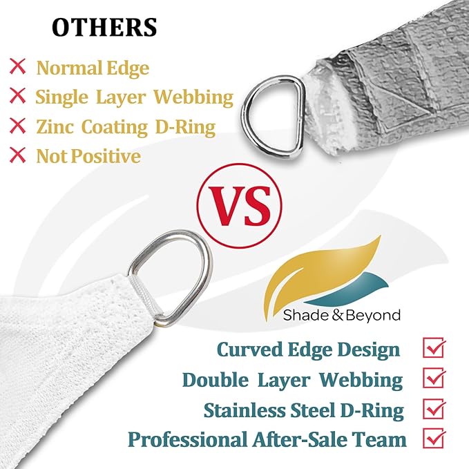 - High-Quality Fabric: Made from 185 GSM UV-protected high-density polyethylene (HDPE) shade fabric with strong stitched seams and durable stainless steel D-rings in each corner; the curved edges enhance stability