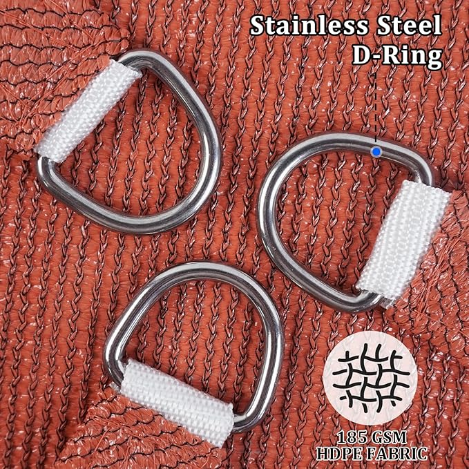 - High-Quality Fabric: Made from 185 GSM UV-protected high-density polyethylene (HDPE) shade fabric with strong stitched seams and durable stainless steel D-rings in each corner; the curved edges enhance stability