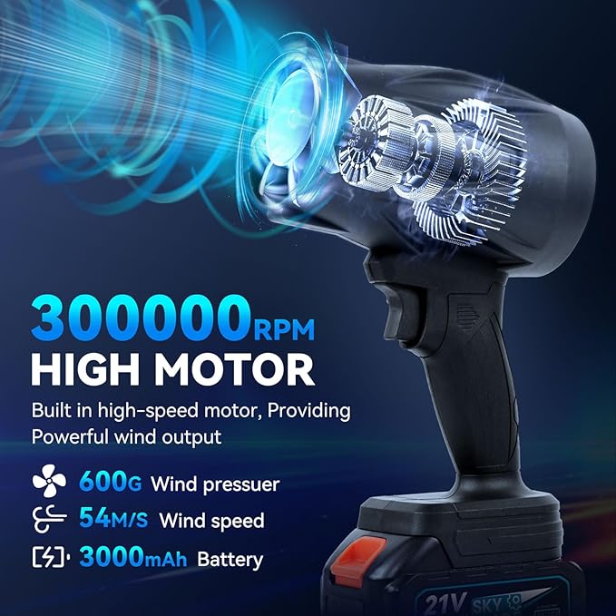 - 【Multi Functional Application】SkyBlade portable cordless leaf blower are designed for various purposes, not only limited to car drying, but also very suitable for outdoor activities such as camping and barbecuing. Portable dust cleaner is also suitable for household cleaning such as dust removal, leaf blowing, making them convenient and practical.