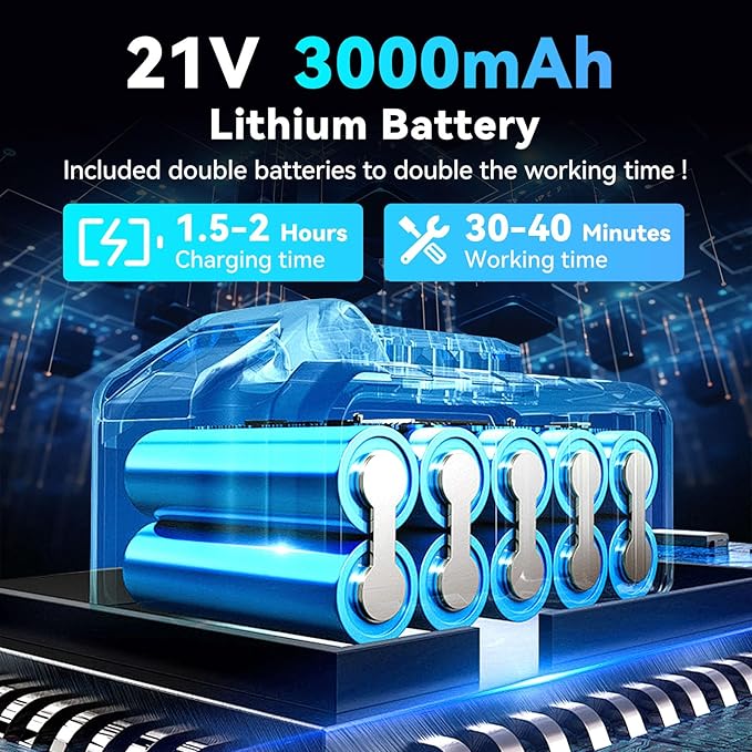 - 【What will you get?】1 x SkyBlade cordless leaf blower yellow, 2 x 21V 3000mAh rechargeable batteries, a pair of earplugs. 1 x charger. The two batteries ensure you can complete large-scale cleaning tasks without worrying about running out of power. Earplugs to reduce noise from working with hair dryers.