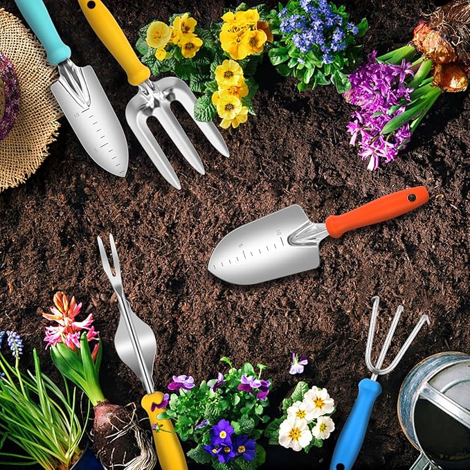 - 🌿 Complete 5-Piece Gardenning Tools: This all-in-one weeding tools gardening includes a hand trowel, transplant trowel, hand rake, hand cultivator and weeder. It covers nearly all your daily gardening tasks and serves as must-have gardening supplies for gardening enthusiasts.