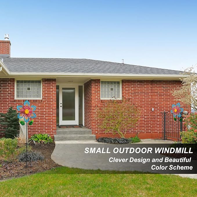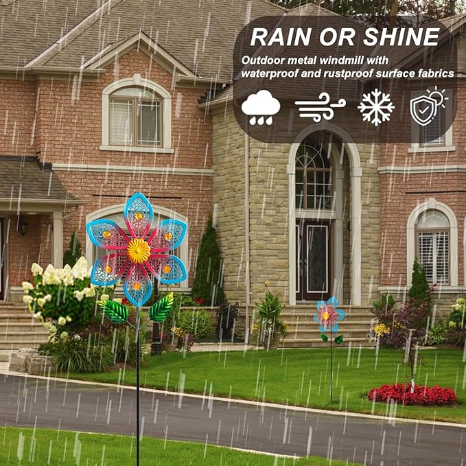 - All-Season Durability: Crafted from heavy-duty galvanized steel with rustproof powder coating, these outdoor windmill sculptures withstand 50+ mph winds and UV exposure. The weighted base ensures stability, while the interlocking metal rods prevent tangling—perfect for year-round garden decor.