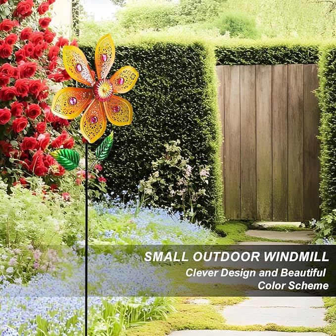 Metal Wind Spinners for Garden Decor Outdoor Windmill Sculptures, Durable Yard Art Wind Spinners Metal Wind Spinner for Patio Lawn Ornament (Bright Orange Flowers)