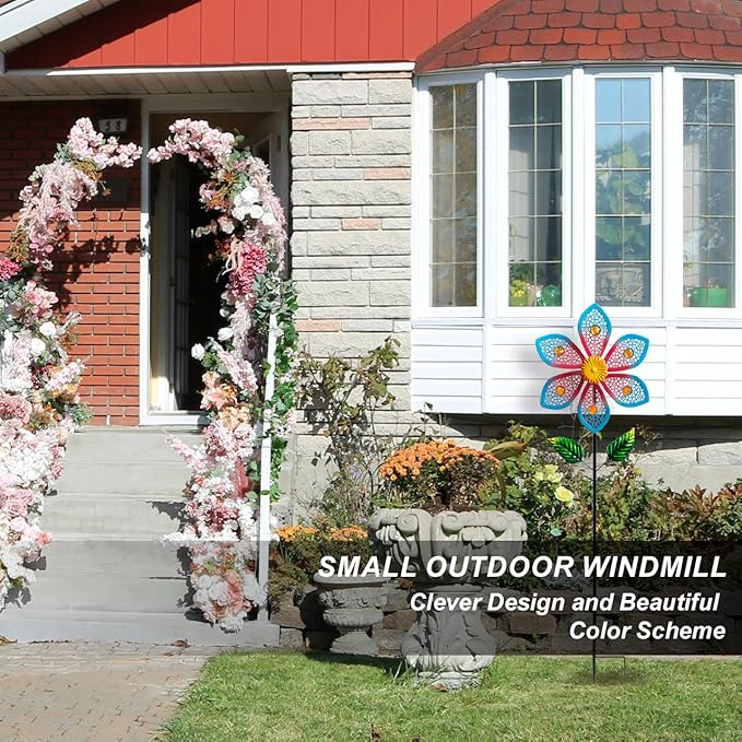 - All-Season Durability: Crafted from heavy-duty galvanized steel with rustproof powder coating, these outdoor windmill sculptures withstand 50+ mph winds and UV exposure. The weighted base ensures stability, while the interlocking metal rods prevent tangling—perfect for year-round garden decor.