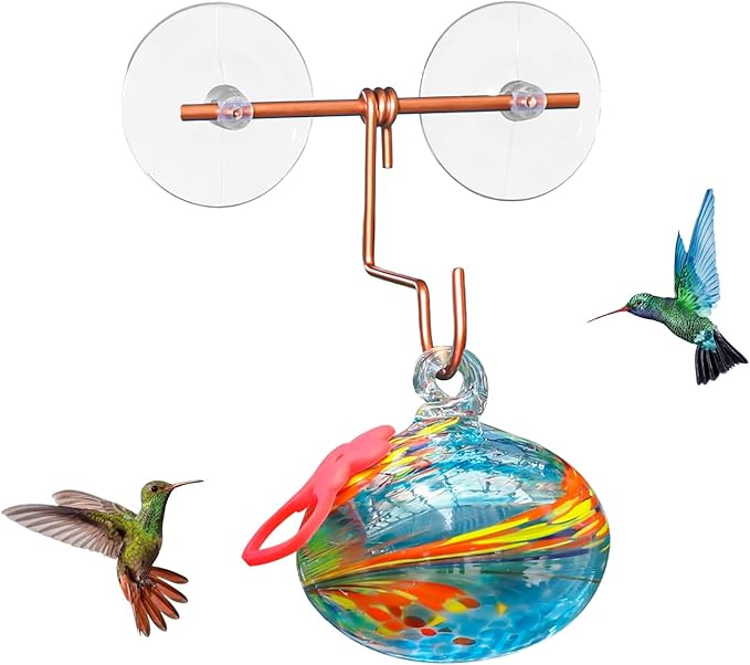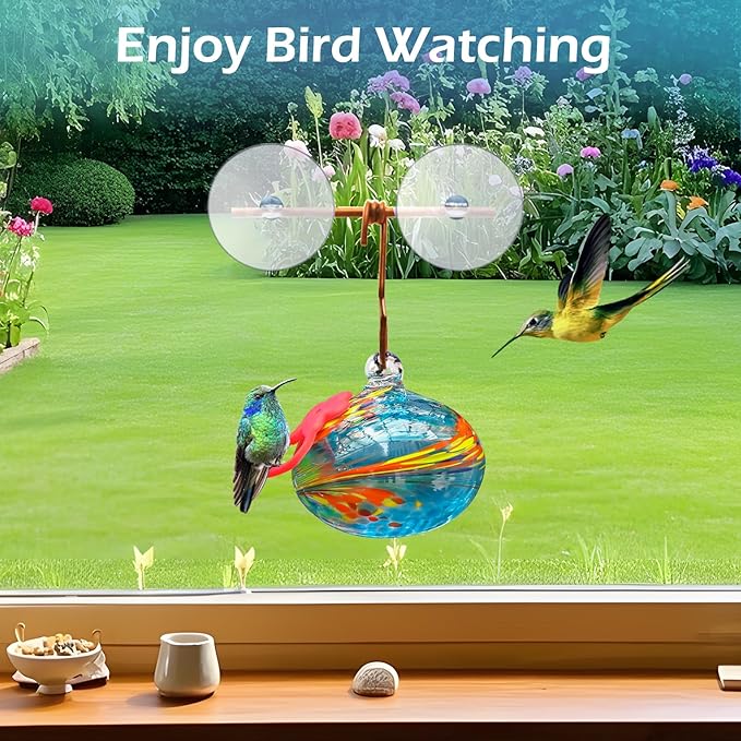- Handcrafted Glass Art:Each small hummingbird feeder ball is expertly crafted by skilled artisans,never fade or leak,easy to clean and refill;featuring eye-catching red silicone flowers that not only attract hummingbirds quickly but also protect their tongues from injury;Decorative hummingbird feeders for outdoors,garden,yard