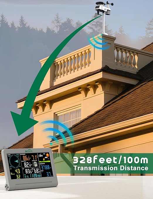 - ➽【Easy Installation】The SQECH SWS-01 weather station transmitter is equipped with a multi-function mounting rod and bracket to meet a variety of installation methods. The home weather station can be fixed on the wall, roof, or installed on the mast. The console and transmitter can achieve fast and automatic connection after power-on, which is simple and convenient. The maximum transmission distance can reach 328 feet (100m) to meet a variety of usage scenarios.