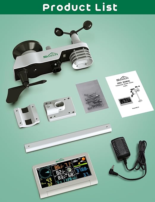 - ➽【What You Will Get】: SQECH SWS-01 Weather Station Console × 1 + Integrated Outdoor Transmitter × 1 + User Manual × 1 + Power Adapter × 1 + Installation Materials + Professional Pre-sales & After-sales Service. (AA and AAA Batteries Not Included). We provide lifetime technical support. If you have any questions, please feel free to contact us. We will reply you as soon as possible.