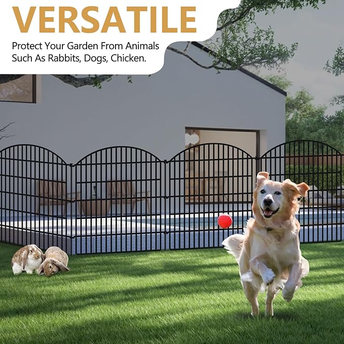 - MULTIPURPOSE: This decorative garden fence not only can used as a temporary fence or animal barrier fence, also can be set up around plants, yard landscaping, vegetables, as a plant protection fence and flower bed fence. Or used as an outdoor dog playpen to create a pet safe play area, or as a pet playpen to keep small animals from escaping or entering and ruining your garden. Additionally, it can be used decoratively to enhance the look of walkways, backyard decorations, and garden borders.